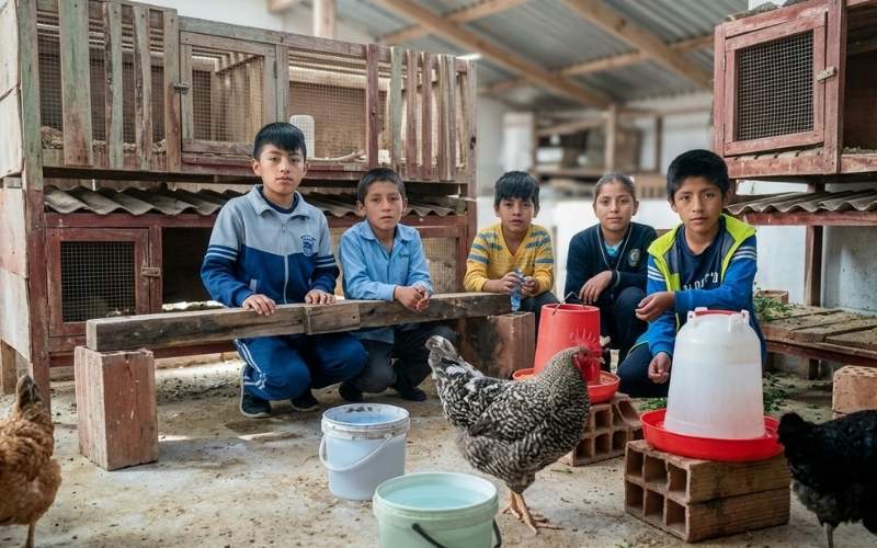 La crianza de aves es una experiencia muy bonita. Aprendemos a cuidar pollitos y gallinas, a alimentarlos bien y a mantener limpio su espacio, nos damos cuenta de que los animales también tienen necesidades, y que debemos ser responsables con ellos. Este taller nos enseña a ser pacientes, atentos y a observar cómo crecen. Además, hablamos sobre la importancia de una buena alimentación y el respeto por todos los seres vivos. Aprendemos ciencias, pero también aprendemos valores. Cuidar a las aves nos hace sentir útiles y comprometidos.