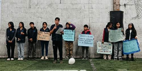 la apertura del programa EDUCCA de la Municipalidad de Cajamarca. Frente a muchos representantes de diferentes instituciones, habló sobre cuidar la Tierra. Su voz llegó al corazón de todos. Nos hizo sentir orgullosos y recordó que los niños, niñas y adolescentes trabajadores organizados protegemos el ambiente cada día.